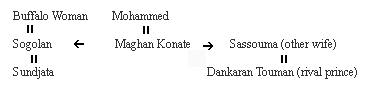 KEITA: THE HERITAGE OF THE GRIOT Before the film . . . Read the essay on Keita. It may be useful to remind viewers that Keita really tells two parallel stories. The first is taken from the Sundjata Epic where the hero, Sundjata Keita, overcomes his disability and discovers his magic powers. The second story concerns the initiation of his distant descendant Mabo Keita, a young, contemporary Burkinabe boy, into this tradition. Both stories are about "learning the meaning of your name," that is, assuming your full adult powers and obligations. The Sundjata Epic is the most celebrated work of West African oral literature. Keita only retells the first third of the epic (a complete rendition can last 60 hours). The epic describes the legendary founding of the Malian Empire in the 13th century by Sundjata Keita. It is also the epic of the origin of the Mande people who presently inhabit parts of Mali, Burkina Faso and Guinea-Conakry. The story begins when a traditional storyteller, a griot or djeliba, is roused by the appearance of the spirit-like Master Hunter (the elder with the white beard). The djeliba senses he must travel to Ouagadougou, the capital of modern day Burkina Faso, to retell the story to a young boy, Mabo Keita, so he will "know the meaning of his name," his destiny or his true character. The Master Hunter reappears at the end of the film signifying that Mabo is now part of the cycle of Mande knowledge. Mabo and his family are descended from Sundjata Keita, but like many contemporary Africans have become quite Westernized, forgetting their heritage. It may be useful to point out to viewers that Mabo and his family speak an indigenous language, Djula, with the griot, but French with each other and at school. The griot, played by the noted Burkinabe actor Sotigui Kouyaté, the father of the film's director, is also living up to the meaning of his name because the Kouyaté family has traditionally acted as djeliba for the Keitas. Thus the filmmaker, Dani Kouyaté, is continuing this family tradition into the age of electronic media. It is common in West African story-telling to fold one well-known tale within another - which can be confusing to those not already familiar with the legends. Therefore viewers may find it helpful to review the following family tree of Sundjata. Maghan Konate, a king of the Mande people, was Sundjata's father. He is a descendant of the prophet Mohammed, and represents monotheistic religion and the rule of secular and clerical law. Sundjata's mother is Sogolon who is herself the daughter of "the buffalo woman," an animal spirit. This side of Sundjata's lineage is allied more with the traditional African practices of animist spirit worship and particularly with the secret knowledge or "magic" which plays such an important part in that tradition. ***There are two widely available editions of the Sundjata Epic which participants may find in their local public library: The Epic of Son-Jara: A West African Tradition by John William Johnson, Indiana University Press, 1992 and Sundiata: An Epic of Old Mali, by Djibril Niane, Essex, Addision, Wesley Longman Limited, 1965. You might also note that the film counterposes two different styles of learning - represented by the storyteller and the schoolteacher. After the film . . . 1. Does the legend of Sundjata remind you of other myths and stories